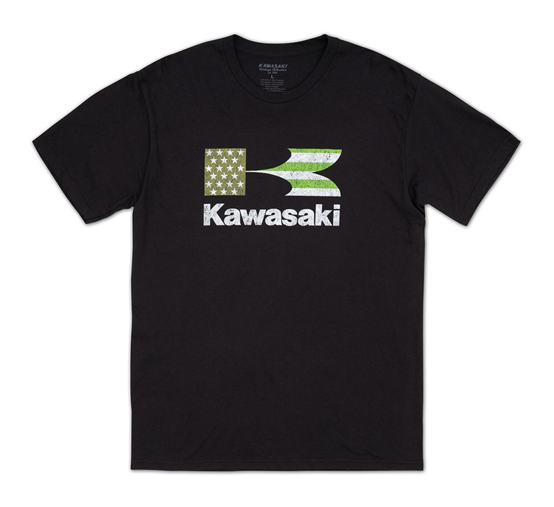52% cotton/48% polyester Kawasaki Heritage Stacked Flag T-Shirt