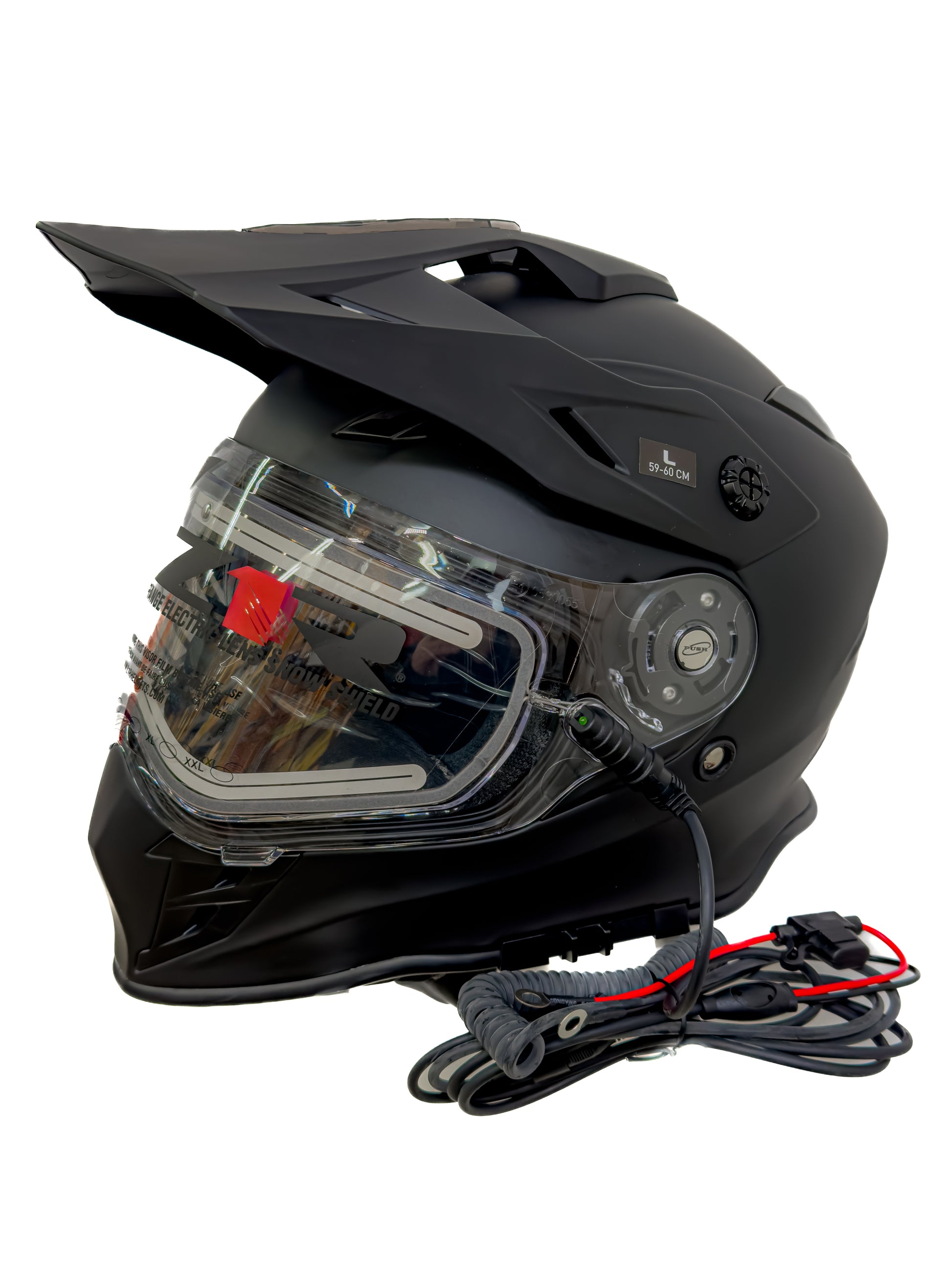- Includes standard shield and dual pane anti-fog electric shield